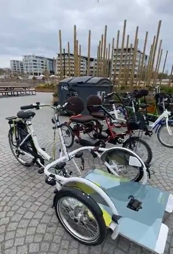 Ensimmäisenä esittelyssä on hollantilaisen VanRaamin sähköavusteinen pyörätuolinkuljetuspyörä, johon pyörätuolia käyttävä henkilö voi tulla omalla pyörätuolillaan kyytiin. Pyörän etuosassa on niin sanottu lava, joka kippimekanisminsa ansiosta muuttuu luiskaksi. Pyörätuoli kiinnitetään pyörään kolmesta kohtaa ja siinä on myös turvavyö. Pyöräilykaveri pyöräilee pyörän takaosassa niin, että pyörätuolissa istuva on kasvot menosuuntaan päin pyörän etuosassa. Pyörä sopii myös aikuisille.